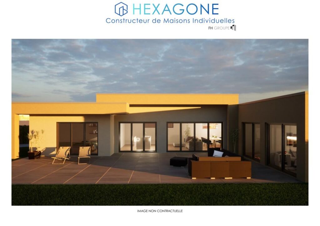 Maison contemporaine de plain-pied de 130 m² habitables, aux lignes modernes et épurées.